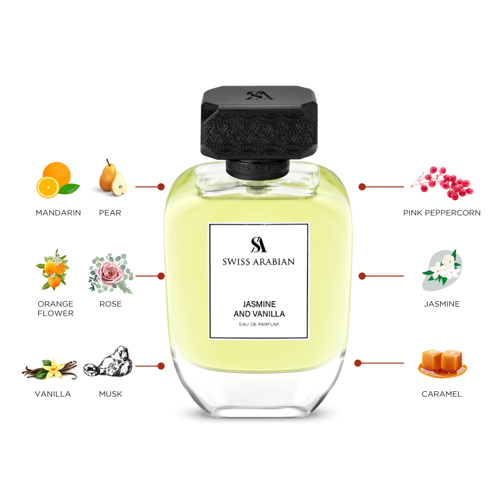 Embrace your inner allure with Jasmine and Vanilla, a fragrance that harmonizes the essence of charm and sweetness. It begins with top notes of mandarin, pear, and pink peppercorn, delivering an immediate burst of freshness and vibrancy. As the scent evolves, the heart notes of orange flower, rose, and jasmine add depth and a delightful floral bloom. The base notes of vanilla, musk, and caramel form a foundation of sweet sensuality, leaving a trail of warm, inviting charm. Vanilla offers a comforting, sweet embrace, while caramel infuses warmth and indulgence. Musk provides a gentle and lasting caress. Jasmine and Vanilla is more than a fragrance, it's an expression of your charisma. Let this captivating blend enhance your presence and inspire confidence in every step you take. Experience Jasmine and Vanilla and indulge in the essence of your allure with every wear.