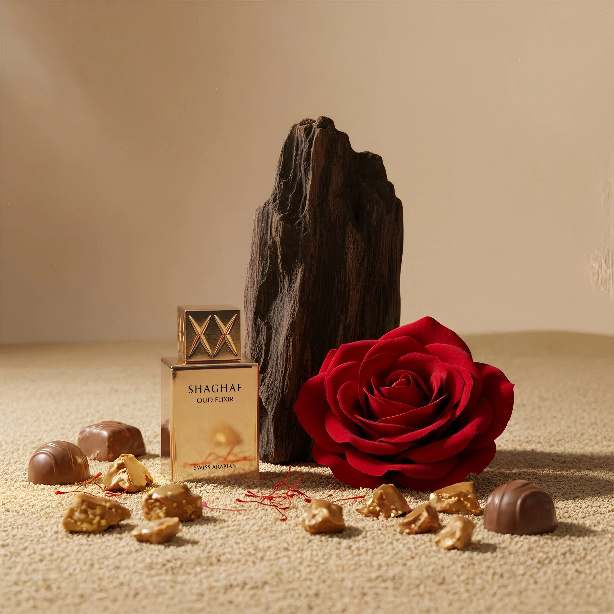 Introducing Shaghaf Oud Elixir, an exquisite fragrance that elevates your senses to new heights. Building upon the foundation of our globally best-selling Shaghaf Oud, this flanker amplifies the allure with an intensified fusion of scents. The journey begins with the captivating top notes of saffron, oud, and pink pepper, creating an immediate and irresistible aura. As the scent evolves, the heart reveals a symphony of rose, praline, oud, and sage, intertwining to captivate the senses with their harmonious blend. The base notes of oud, vanilla, amber, and musk add depth and complexity, leaving a trail that evokes warmth and sensuality. Oud brings an alluring intensity, while vanilla and praline provide a touch of sweetness. Amber and musk envelop you in a comforting embrace. Shaghaf Oud Elixir is a fragrance that transcends expectations, enveloping you in an intoxicating elixir of scents that reflect your unique charm and sophistication.Experience Shaghaf Oud Elixir and elevate your senses to a new realm of allure.