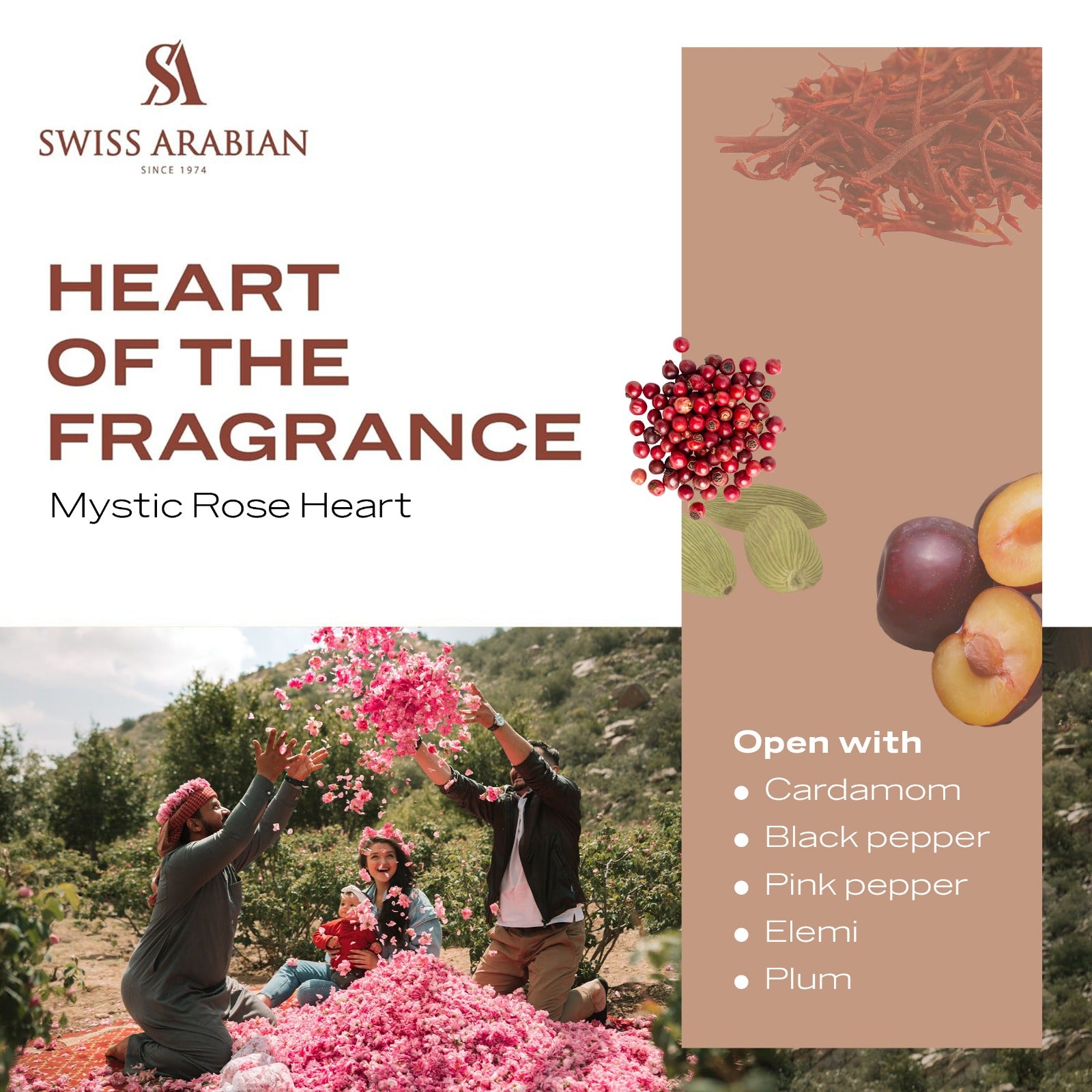 Cardamom, Black pepper, Pink pepper, Elemi, Plum