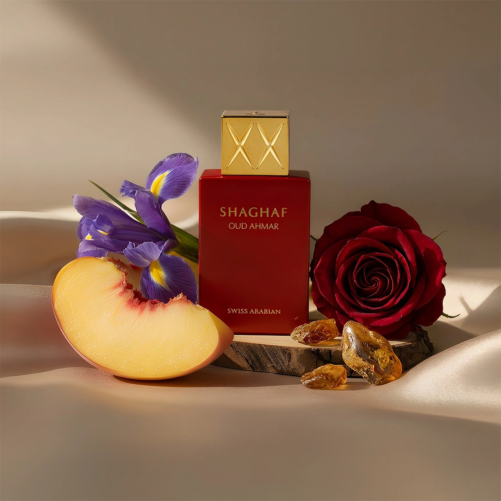 Shaghaf Oud Ahmar is a warm amber gourmand fragrance that silently speaks of luxury and opulence. Make a dazzling entrance with bergamot, melon and juicy peaches nuanced with iris and freesia. A mouth-watering heart of apple and tonka bean blends seamlessly into a bed of roses. Your lingering signature is a sumptuous breeze of golden vanilla, exquisite woods and gentle powdery musks as Shaghaf Oud Ahmar leaves the unique memory of you in its wake.