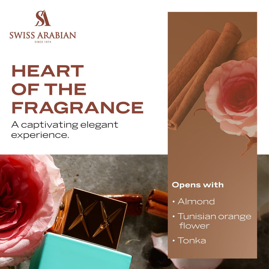 Step into a world of captivating elegance with Shaghaf Oud Tonka, a fragrance that unveils a mesmerizing blend of scents. The journey begins with the invigorating top note of almond, setting the stage for an enchanting experience. Feel the captivating embrace of cinnamon bark, Tunisian orange flower, and Turkish rose in the heart, as they intertwine to create a symphony of sensuality and allure. The base notes of tonka, vanilla, and amberwood add depth and richness, leaving a trail of captivating elegance. Tonka provides a warm and addictive embrace, while vanilla adds a touch of sweetness. Amberwood brings an earthy and woody allure, completing the captivating composition. Shaghaf Oud Tonka invites you to embrace the captivating elegance it embodies. Let its enchanting fusion of scents reflect your unique identity and celebrate your refined taste. Experience Shaghaf Oud Tonka and let its captivating allure leave a lasting impression.